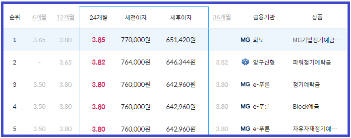 | 새마을금고 정기예금 금리비교 (2024년 하반기) (0) | 2024.07.31 |